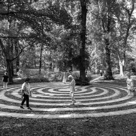 A pannonhalmi arborétumban található klasszikus labirintus a leghosszabb úton vezeti végig az útra kelőt a bejárat és a középpont között. Az út állandó lüktetése, a középponthoz való közeledés és az attól való távolodás hullámzása olyan belső, beavatási útvonallá, meditációs ösvénnyé teszi a labirintust, amely élethelyzetünktől és világlátásunktól függően a találkozás alkalma lehet önmagunkkal és a bennünk lakozó Istennel. A labirintusjárás során segítségül hívjuk a Biblia zsoltárait is, amelyek az emberi élettapasztalat sokféleségének megragadásával és kimondásával közelebb vihetnek mindahhoz, ami ott van bennünk.